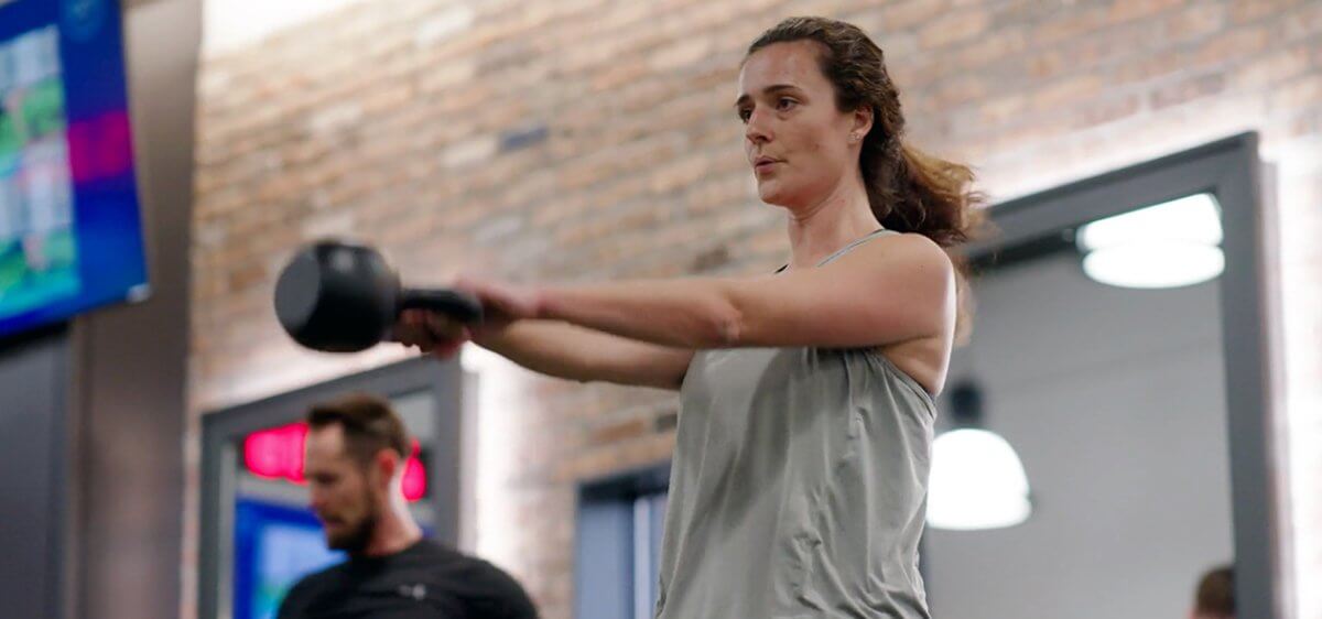 • A complimentary group workout with flexible start times. A new group begins every 10 minutes, so you can join when it works best for you.
